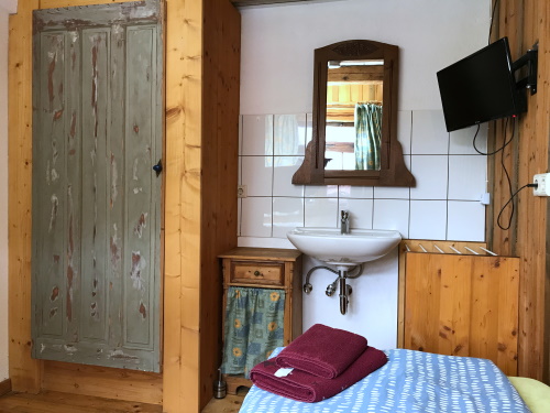 Po lewej idź wąskimi drewnianymi schodami. Mieszkanie „Bakhita” znajduje się na końcu schodów po prawej stronie.